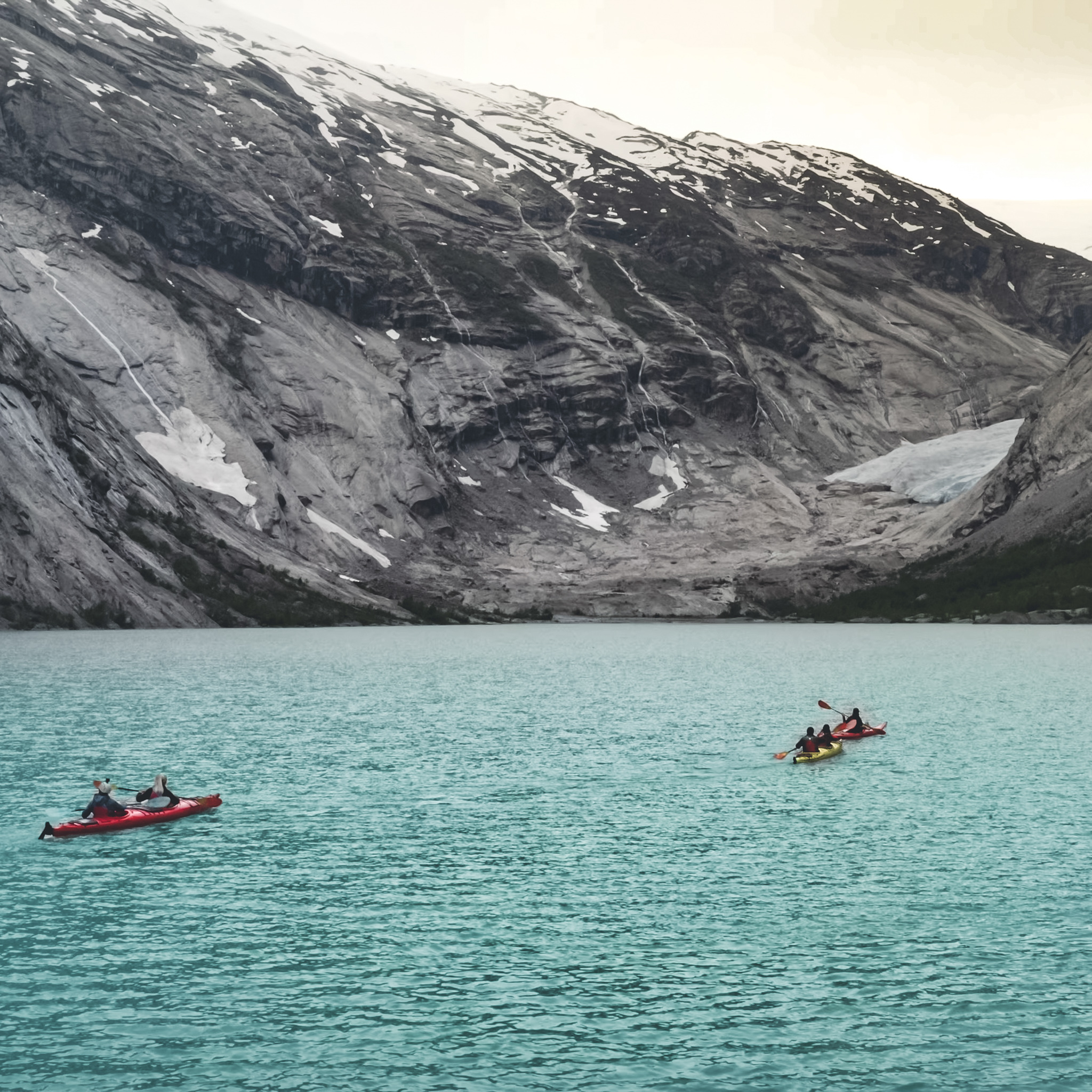 Opplev breen kombinert med kajakk gjennom Styggevatnet og Austdalsvatnet! Krever ingen erfaring. Varighet: 7.5 timer. Pris: fra 1500 NOK/person.